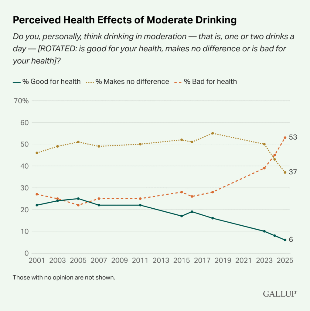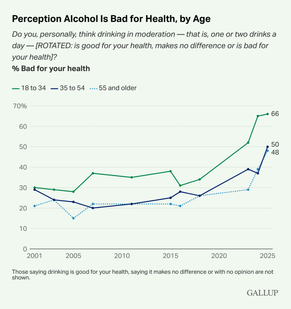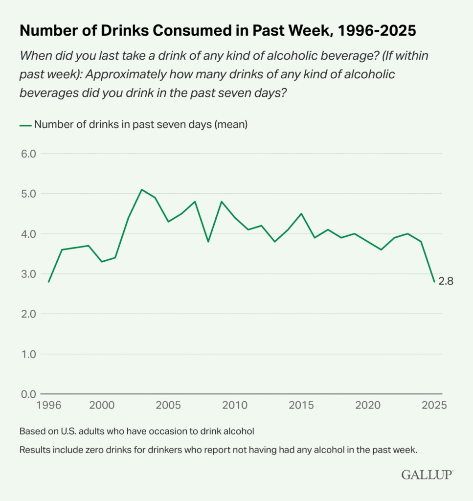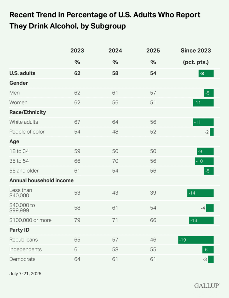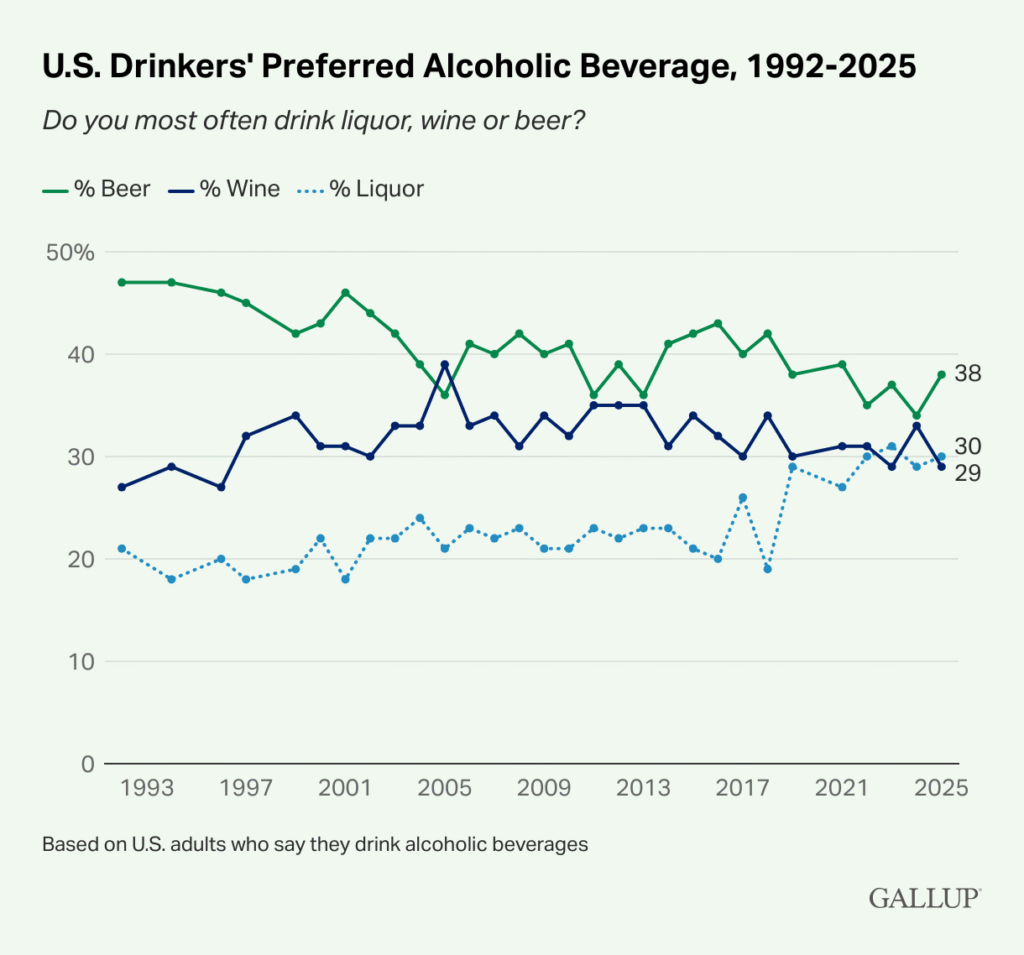 Ieri mi sono imbattuto nel rapporto Gallup 2025 sulle abitudini di consumo di bevande alcoliche, negli USA pubblicato lo scorso agosto. Un rapporto che non avevo mai visto prima e che traccia un quadro chiaro della situazione attuale del mercato statunitense.